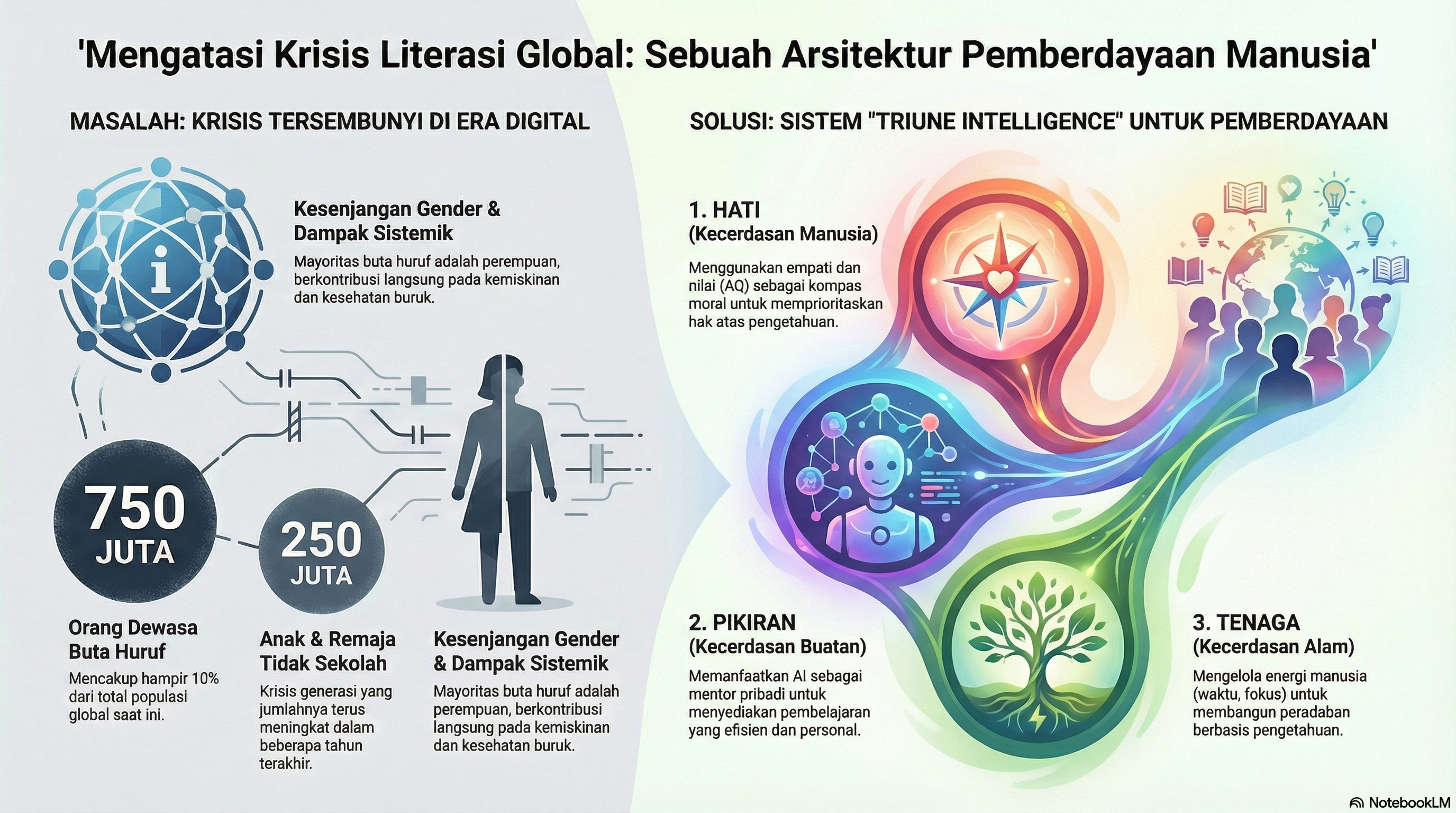 - Empati sebagai Penggerak: Tanpa “hati” yang selaras, teknologi pendidikan hanya akan menjadi optimasi tanpa jiwa. Kita harus memahami bahwa buta huruf adalah penghambat martabat manusia.